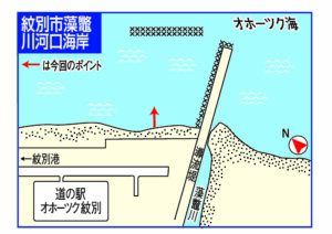 8月20日午前8時、紋別市の藻べつ川河口海岸の駐車スペースで出会った男性が未明にカラフトマスを釣ったというので詳しく話を聞いた。