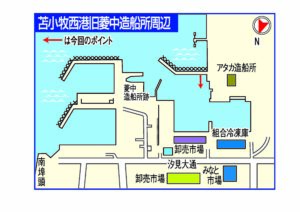 2匹を上げた古谷健さんは昨年8月、同港の菱中造船所跡付近にある突堤で全長2から3センチのアオリイカの子どもを発見。後日、エギングで通い詰めると、同突堤やアタカ造船所前の防波堤で小型から23センチのアオリイカを最多20匹ほど釣った実績があるという。今年もそろそろ釣れだすはずと踏んで同日入釣したのは、菱中造船所跡付近にある2つの防波堤のうち北側の防波堤中間部。