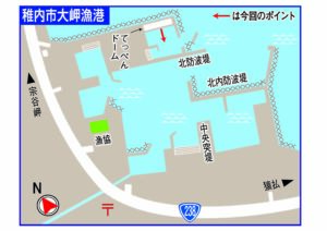 同港はサケのシーズンが終了すると入れ替わりでカジカが釣れ始める。晴れて風も弱く、気温も12度まで上がった当日午後3時、「てっぺんドーム前」の船だまり岸壁にロックフィッシングで入釣。10フィートのルアーロッドにPE2号ラインのスピニングリール3500番をセット。リグはハヤブサのハイアピールジグヘッド、ライブスイマーオフセット14グラムで、ゴールドラメ入りブラックの3インチのシャッド系ワームを組み合わせ、10メートルほど先へキャストした。