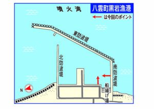 八雲町黒岩漁港で10月29日午後2時ごろ、ワームで25から38センチのアブラコが6匹上がっていた。