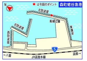 4月22日午前10時ごろ、森町蛯谷漁港でこの時季釣るのがまだ難しいアブラコを4匹釣る人がいた。