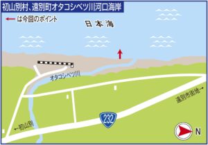 初山別村と遠別町にまたがるオタコシベツ川河口海岸で5月21日、ルアーでサクラマスが全体で3匹上がった。