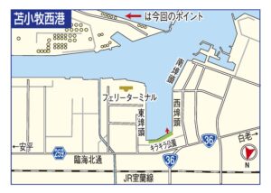 苫小牧西港のキラキラ公園で5月26日午後0時半ごろ、エギングでマメイカが釣れていた。同港でのエギングシーズン到来だ。
