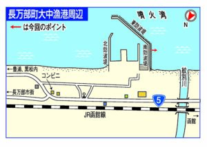30人ほどでにぎわう港で午前4時ごろ、釣りを始めた山川さん。グリーン系ミノーを50から60メートル投げ、ストップアンドゴーを繰り返していると、4時ごろに周囲でサクラマスがばたばたと上がりだす。4時半ごろ、山川さんにも待望のバイトがきたが、釣れたのはアメマス。60センチの良型だが、残念ながら本命ではなかった。さらに6時台には足元で本命2匹をばらし、まさに「泣きっ面に蜂」。山川さんによると、朝は全体で5、6匹釣れていたという。