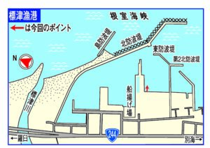 6月30日夕方、標津漁港でエギをキャスト。短時間でマメイカが4匹釣れ、新たなフィールドとしての可能性を十二分に感じた。