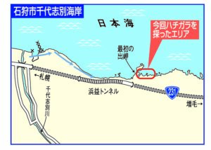 9日、石狩市浜益区の千代志別海岸でハチガラ釣りを満喫した。午後3時ごろ、同市浜益トンネル南側出口から海岸へ下り、磯場伝いに北へ50分ほど歩いて目指す磯場へ到着した。